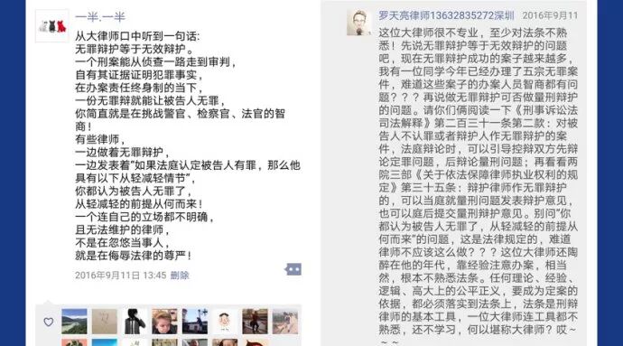 更可恶的是,某所谓的大律师与我的一位检察官同学交流的时候,振振有词的说:“……有些律师,一边做无罪辩护,一边发表着如果法庭认定被告人有罪,那么他具有以下从轻减轻情节,你都认为被告人无罪了,从轻减轻的前提从何而来?一个连自己的立场都不明确,且无法维护的律师,不是在忽悠当事人,就是在侮辱法律的尊严!”(详见下图)